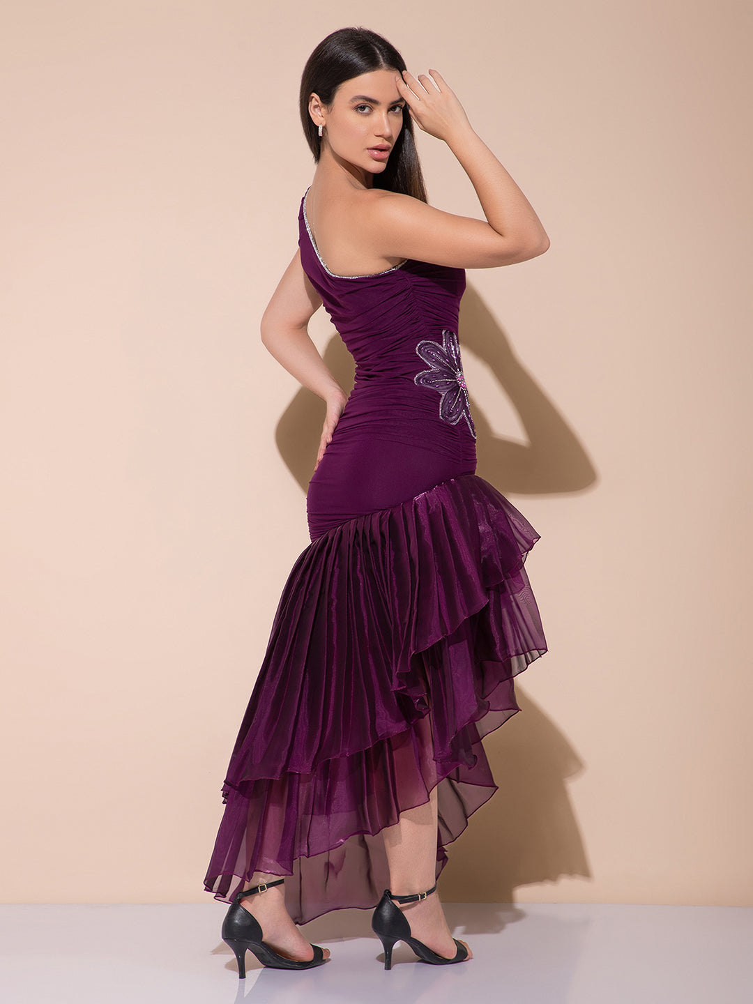 Fabric Strachable Mess Based Nylon Lycra, Lowerpart Imported Tissue Highlight with beads & Zericon patch
