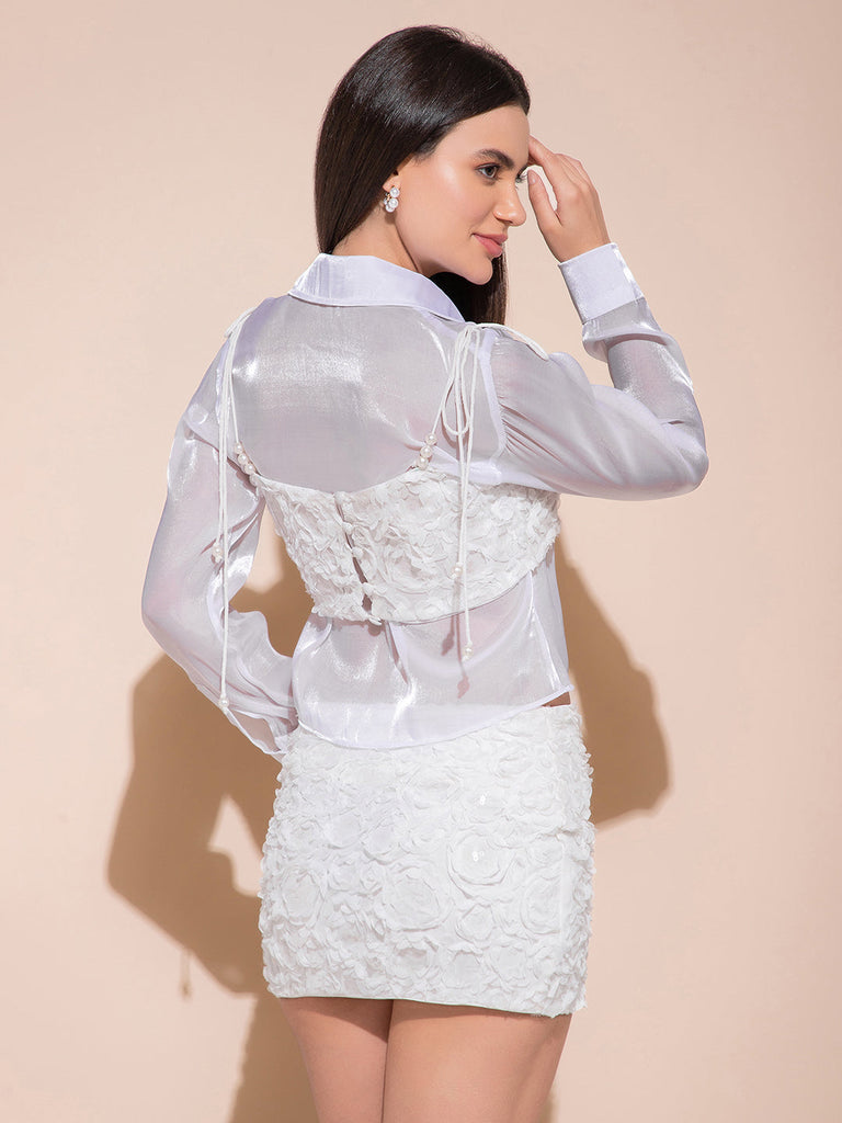 | Fabric | Ribbon Flower Work on Mess, Shirt Imported Tissue, Skirt Base With polyester Lining |