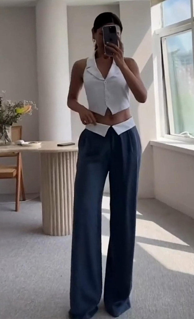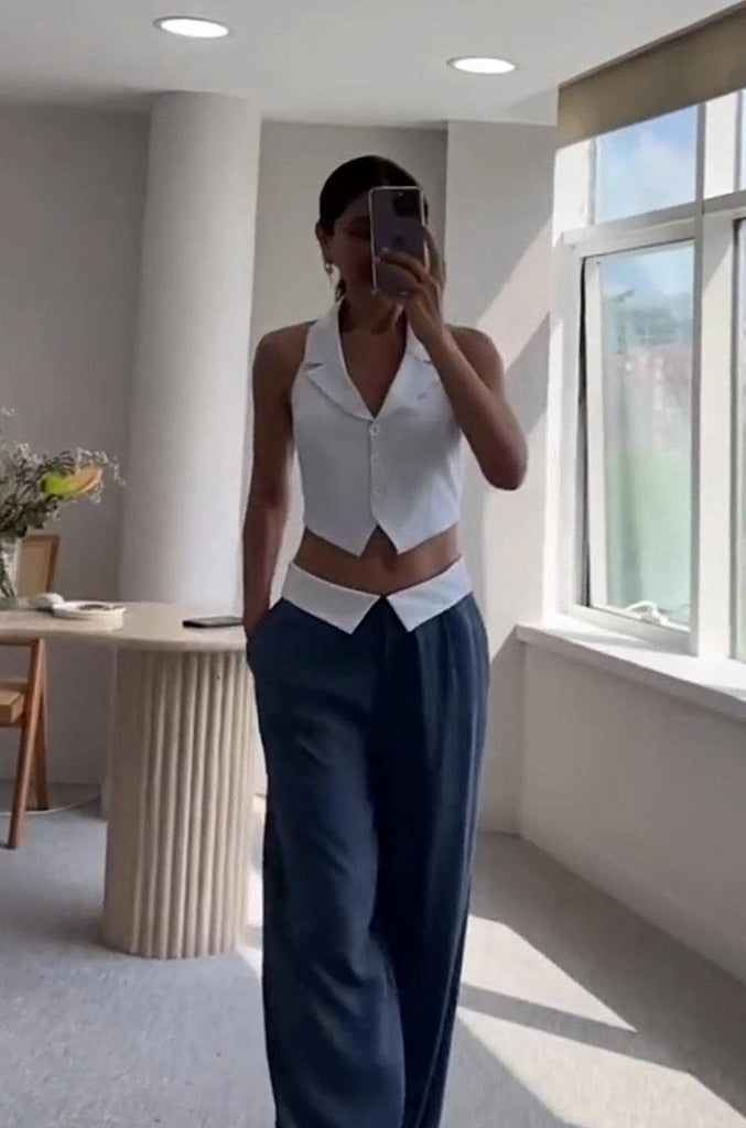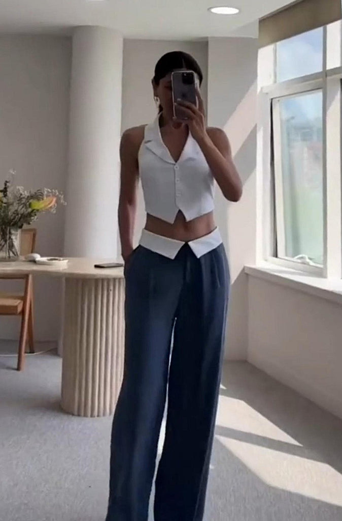 White Waistcoat with Navy Blue Pant